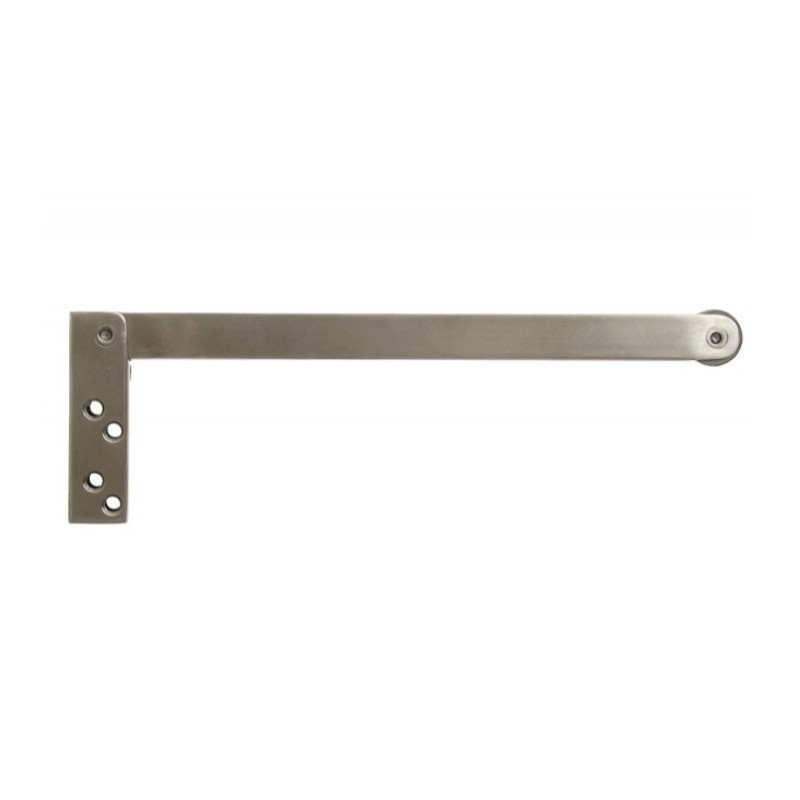 Ramieniowy regulator kolejności zamykania przeznaczony jest do stosowania w drzwiach dwuskrzydłowych wyposażonych w samozamykacze ramieniowe, wykonany został z stali nierdzewnej